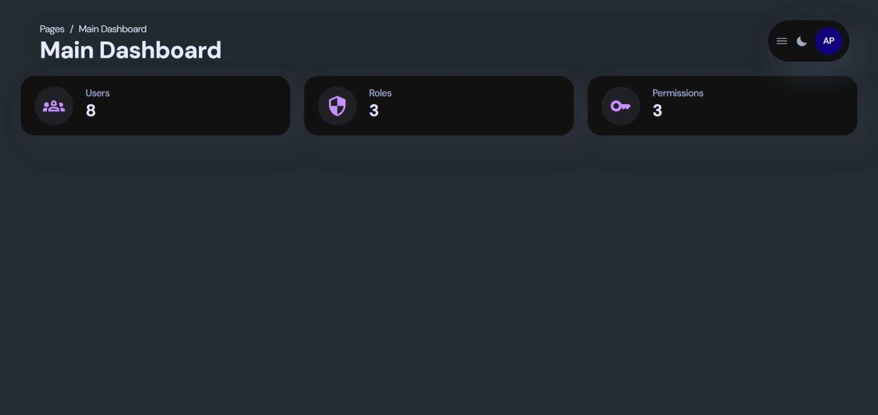 - 📊 Dashboard Overview: Provides a central dashboard presenting key system statistics like user and role counts.