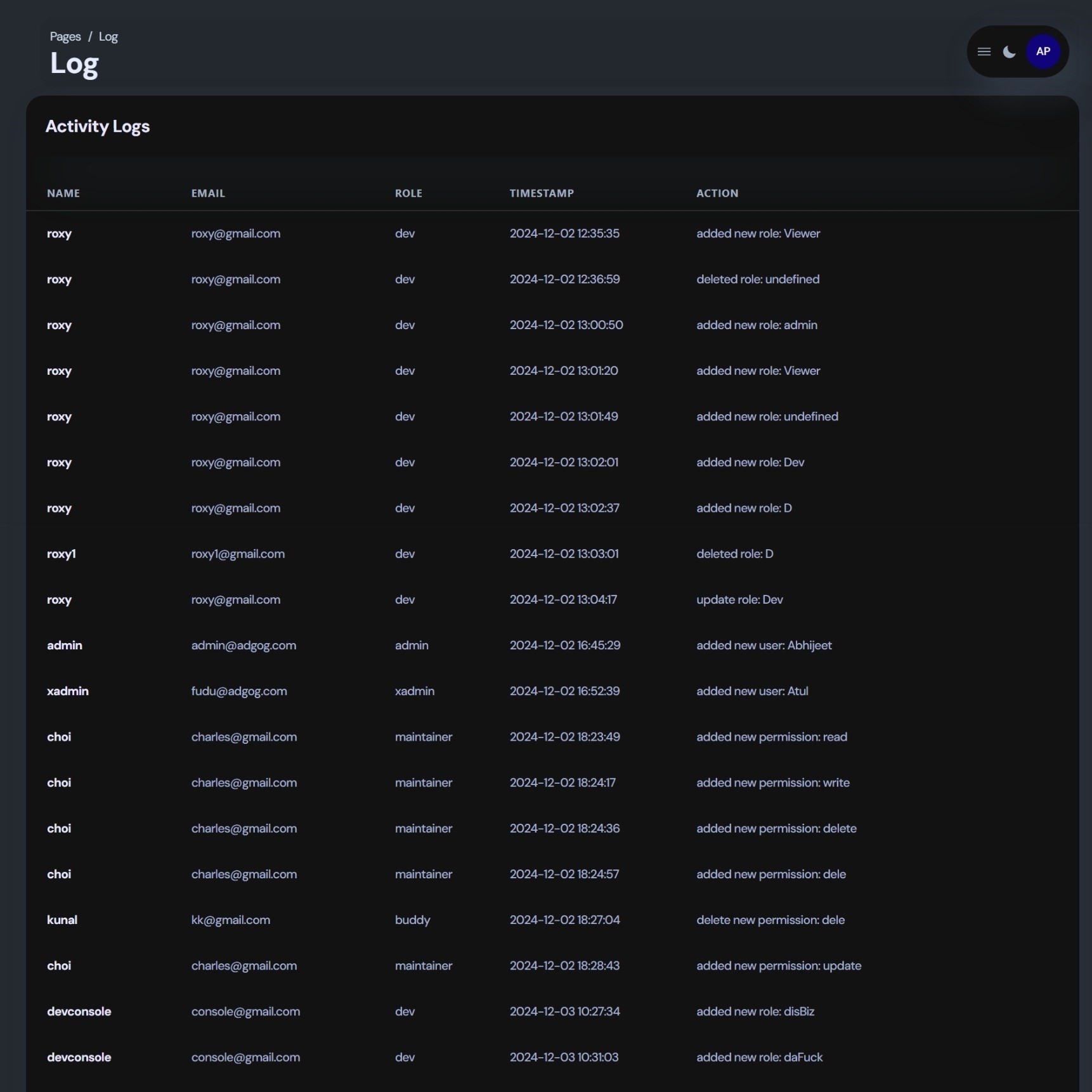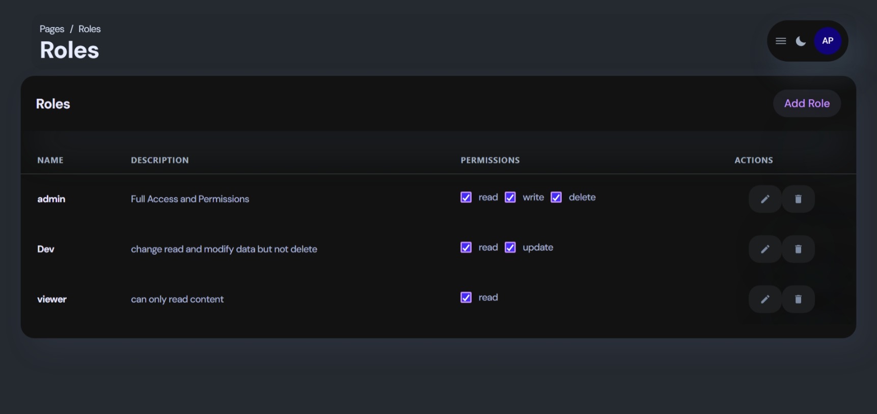 - 👤 User, Role & Permission Management: Admins can perform comprehensive CRUD operations on user accounts, define system roles (e.g., Admin, Dev, Viewer), and assign specific capabilities for granular access control.